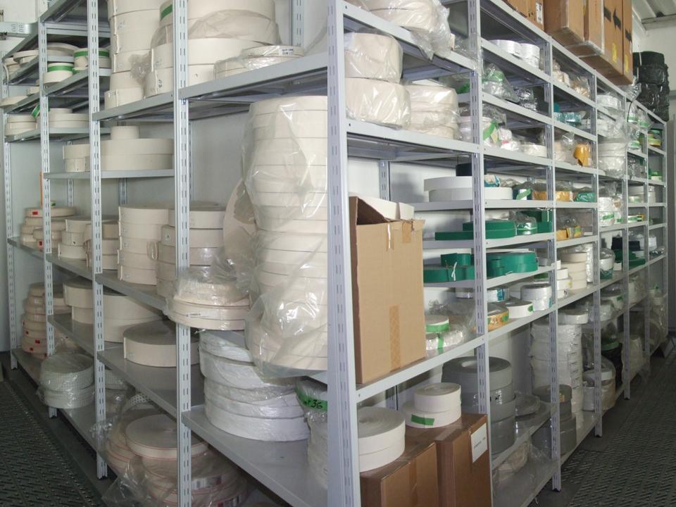 Nastri in cotone doppio ritorto in tutte le larghezze fino a mm 120, nastri trasportatori elasticizzati, nastri in poliestere con o senza foratura in qualsiasi larghezza e maschera di foratura; nastro in cotone con trapunta in gomma in varie larghezze, e scolpiture, rigati, a nido d'ape, sabbiati, ecc., nastri policord in vari diametri sia termosaldabili che aggiuntabili con apposite giunzioni, nastri in velluto, nastri autoadesivi in varie larghezze per guida nastri trasportatori.